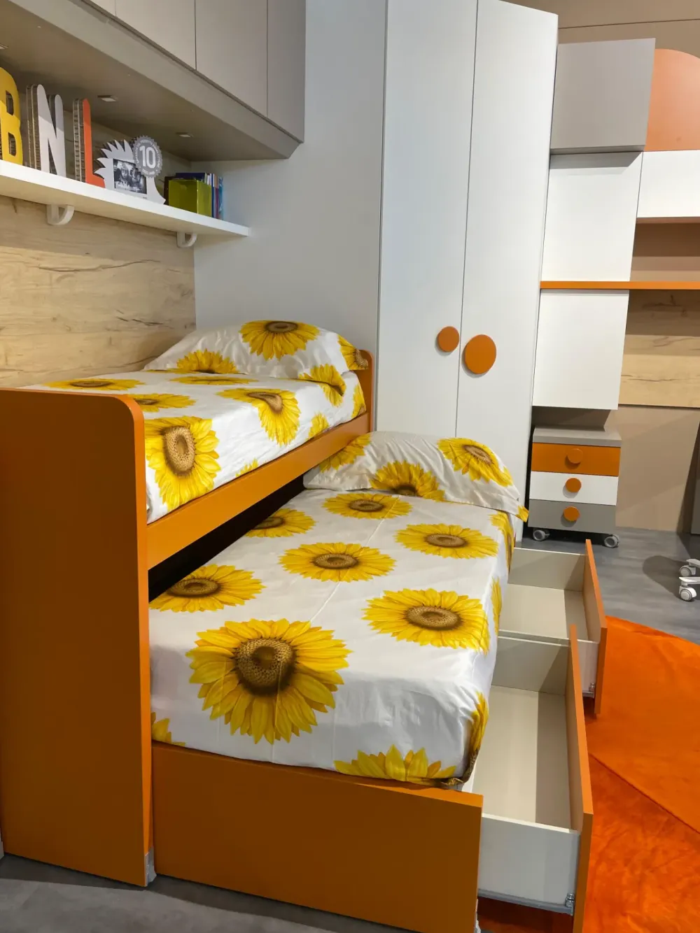 In promozione la cameretta Doimo City Line mod.Qik, colori arancio, fango, bianco e rovere vintage.