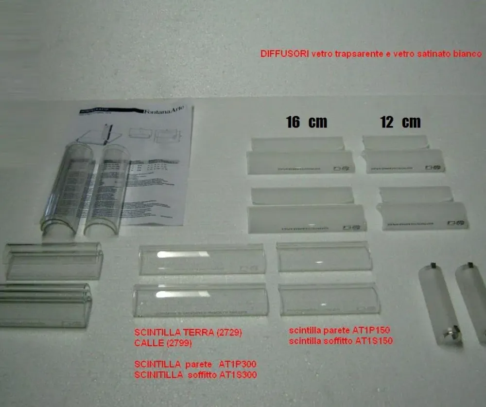 parti di ricambio ,vetri trasparenti Lampade FontanaArte serie scintilla