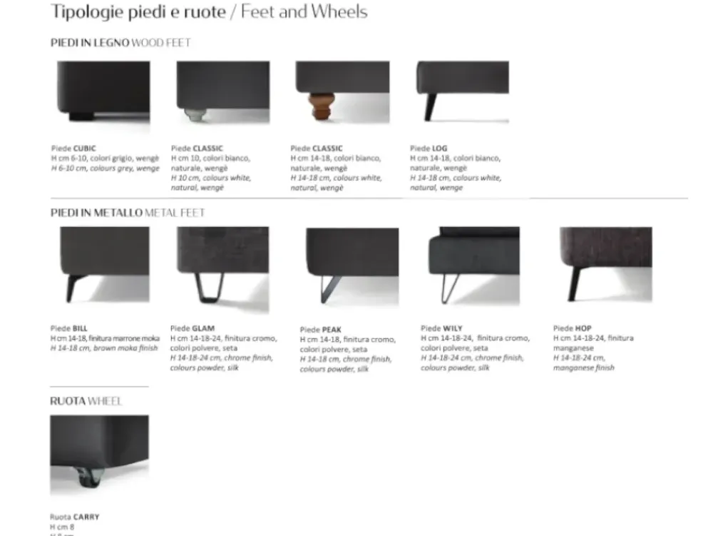 - Per configurazione di misure, piedi o rivestimenti di categoria differente quotazione a richiesta.
