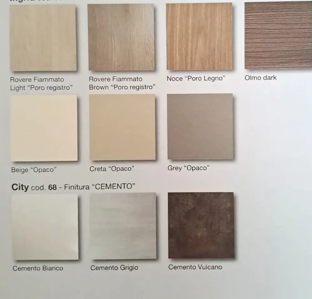 Un design unico e materiali di qualità contraddistinguono tutte le pareti attrezzate del noto e rinomato brand: il modello in foto, per esempio, è in laminato materico.