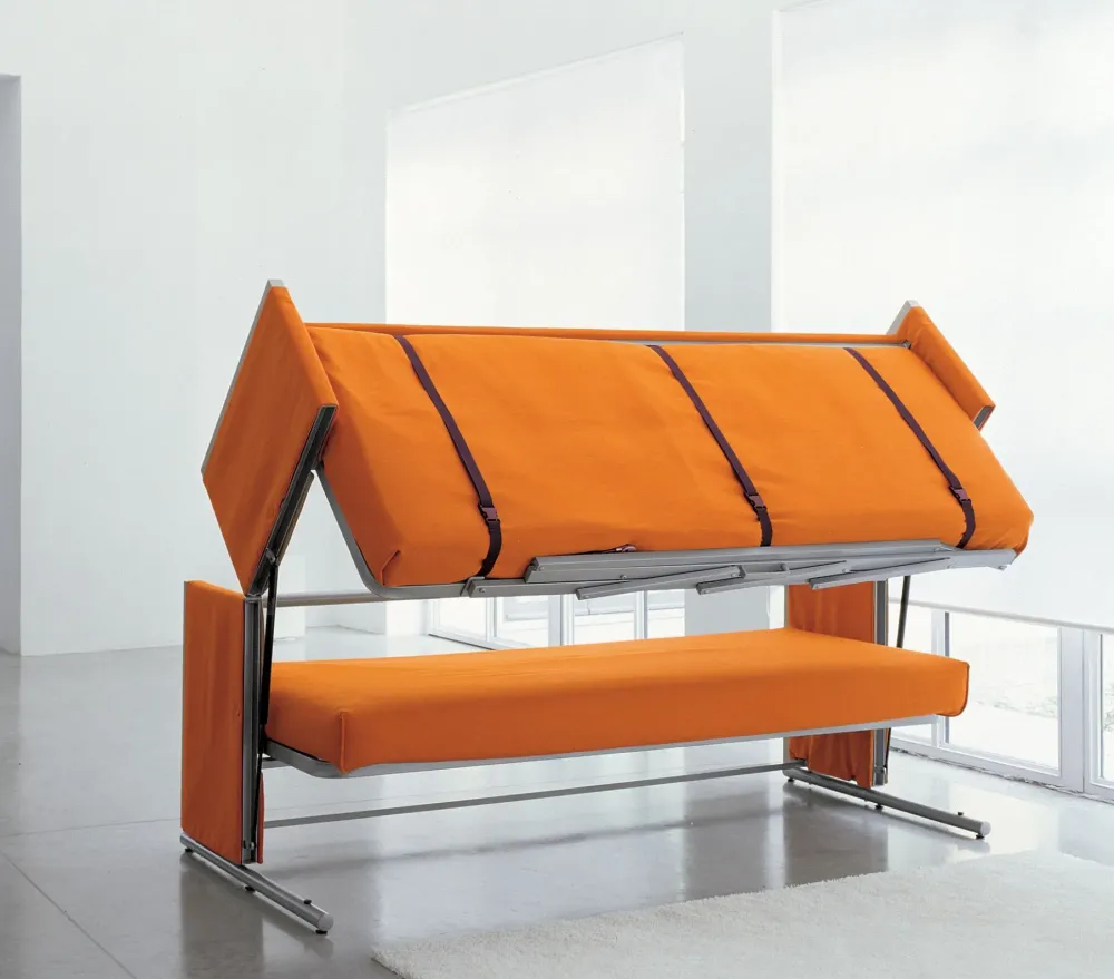PROMOZIONE SUL NUOVO SU COLLEZIONE PER NUOVA APERTURA PUNTO VENDITA CLEI PROMOZIONE SUL NUOVO, PREZZO OUTLET Il sistema trasformabile Doc è un comodo divano completamente sfoderabile che con un semplice gesto e senza sforzo fisico si trasforma in un pratico letto a castello, dotato di una sicura scala integrata nella struttura, che funge anche da sostegno e da barriera protettiva. DIMENSIONI : Divano chiuso 2060 x 900 x 950 mm / 81.1 x 35.4 x 37.4 inches Letto castello 2060 x 900 x 1390 mm / 81.1 x 35.4 x 54.7 inches Spazio utile tra i due letti 670 mm / 26.4 inches . INFORMAZIONI TECNICHE Meccanismo di apertura con pistoni a gas. Sollevamento a rotazione del letto inferiore con scala snodata portante e barra di pr otezione. Struttura tubolare in ferro verniciata a polvere epossidica, piedini in nylon. Reti realizzate con telaio in ferro tubolare rinforzato e doghe in massello di faggio multistrato curvato fissate al telaio con guarnizioni in nylon/ gomma regolabili. Cinghie ferma materasso in fibre di nylon con fibbie a sgancio in nylon nero. Imbottitura struttura e cuscinature: Versione completamente in poliuretano densità 16kg/ m3 (1,8 Kpa) + rivestimento in fibra t ermolegata con supporto agugliato gr. 500/m2 + tela cotone 100% bianca. Versione con struttura in poliuretano densità 16kg/ m3 (1,8 Kpa) + rivestimento in fibra termolegata con supporto agugliato gr. 500/m2 + tela cotone 100% bianca. Cuscinature in piuma, in piuma bianca oca etichetta Argento Assopiuma e rivestimento in tela 100% cotone. I cuscin i schienale hanno un inserto in poliuretano espanso densità 25kg/m3 (3,6Kpa). Rivestimento completamente sfoderabile. Lavaggio come da etichetta tessuto. Finiture: fianchi laterali in massello toulipier rivestito rovere sbiancato, rovere grafite e laccato clei colours. Materassi semiortopedici a molle, costruiti con molleggi in filo d acciaio temprato diam. 2,5 mm e feltro di gr. 1200/mq., n. 1 lastra per parte. L imbottitura è realizzata con falde d ovatta cardato millefiori, rivestimento in puro cotone e fasce ricamate. Materassi in poliuretano espanso, realizzati in poliuretano espanso ad alta densità (25). L imbottitura è con falde di cotone a gugliato. Il rivestimento in puro cotone con fasce ricamate. Il divano letto e’ disponibile con varie tipologie di tessuto . Il prezzo esposto e’ riferito al divano letto con tessuto in categoria A . Il prezzo e’ comprensivo dei 2 materassi e di un copriletto . Sono possibili variazioni sulla finitura e aggiunte di elementi perche’ il divano e’ da produrre. SIAMO RIVENDITORI CLEI A LISSONE E SPEDIAMO IN TUTTA ITALIA E OLTRE per info compilare il form PROMOZIONE SUL NUOVO SU COLLEZIONE PER NUOVA APERTURA PUNTO VENDITA CLEI