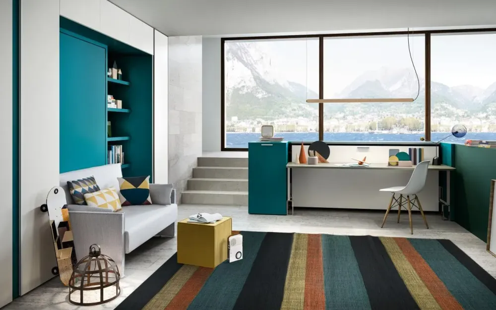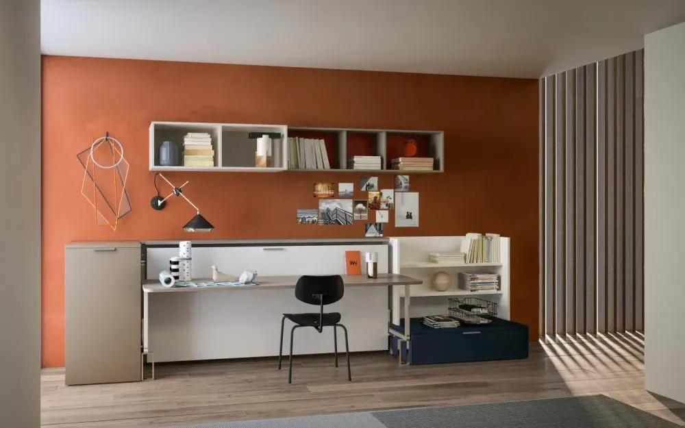 MYHOME presenta Cabrio di Clei, un innovativo sistema componibile trasformabile che unisce funzionalità, design e comfort. Con un semplice movimento, la composizione si trasforma dalla versione giorno alla versione notte, senza dover rimuovere nulla dal piano scrittoio: il letto singolo resta sempre pronto all uso, pratico e immediato.