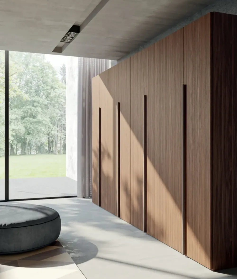 - Durante la scelta di armadi e cabine armadio per la camera da letto, si rischia spesso di dover rinunciare all’aspetto estetico piuttosto che pratico per problematiche abitative peculiari o limiti di budget. L’armadio può essere ad ante battenti, scorrevole o a soffietto, o può addirittura avere un conformazione a cabina: la soluzione qui presente è con ante battenti ed è ideale per rendere gli ambienti agibili e confortevoli.