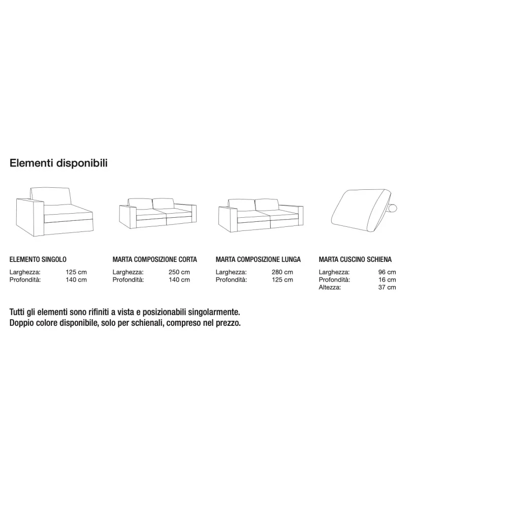 IL DIVANO MARTA IN SOLUZIONE PRIMA FOTO HA UN INGOMBRO DI LUNGHEZZA CM 280 PROFONDITA’ CM 125 ALTEZZA CM 95 ALLA SPALLIERA E ALTEZZA SEDUTA CM 46