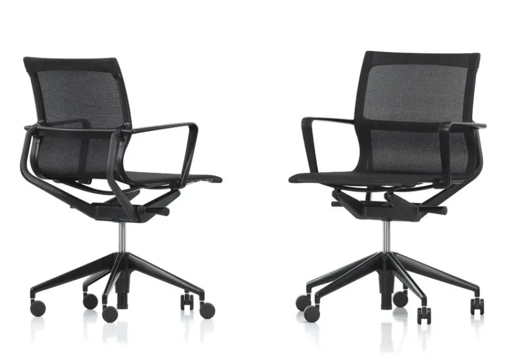 - Il marchio Vitra ha pensato a una struttura con ruote per la sedia qui visibile, la quale ultima le doti pratiche del pezzo d’arredo.