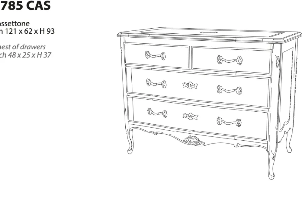 – 01 Comò art 1785 finitura bianco antico – Dimensioni: cm 121 x 62 x h 93