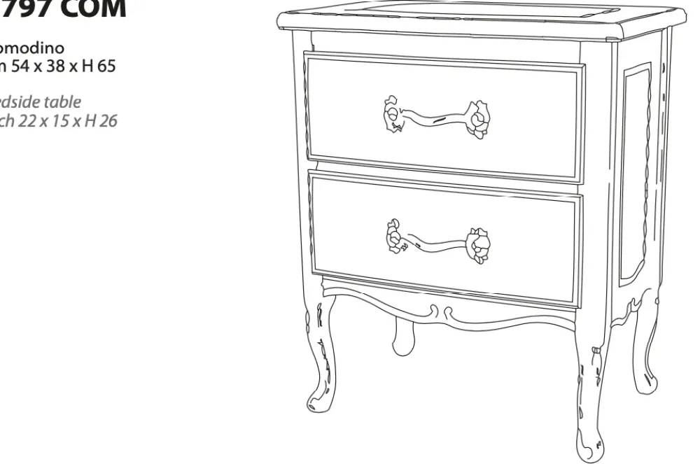 – 02 Comodini art. 1797 finitura bianco antico – Dimensioni: cm 54 x 38 x h 65