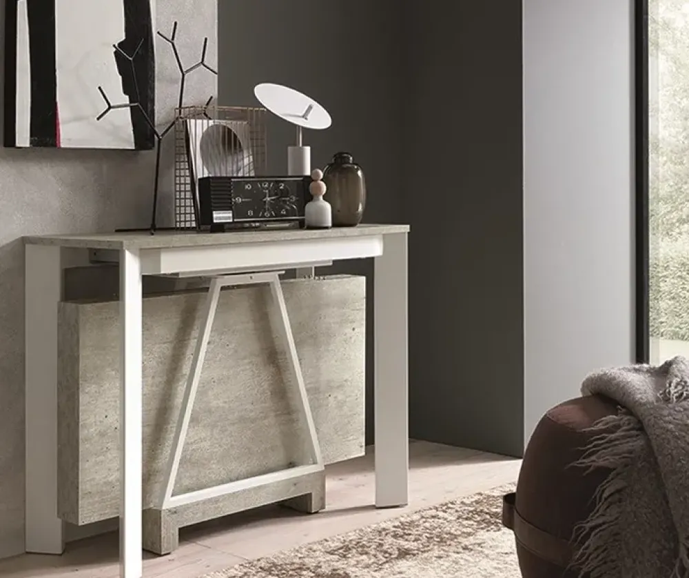 - Tipologia consolle allungabile, che permette di adattare le dimensioni del mobile alle diverse esigenze di spazio, offrendo versatilità e praticità.