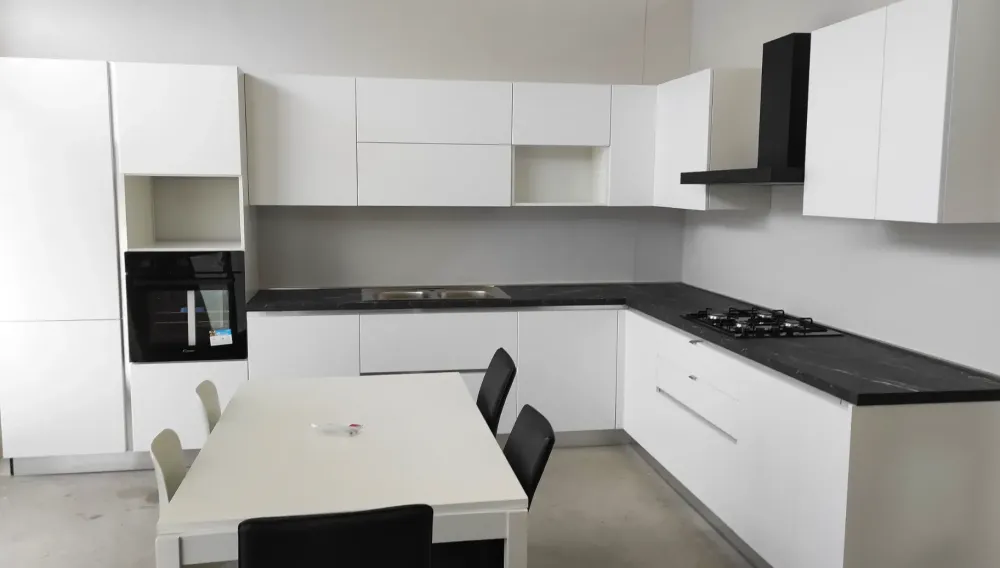 La cucina girasole laccata opaca bianche Arrex in offerta è perfetta per stanze di ogni richiamo stilistico e dimensione.