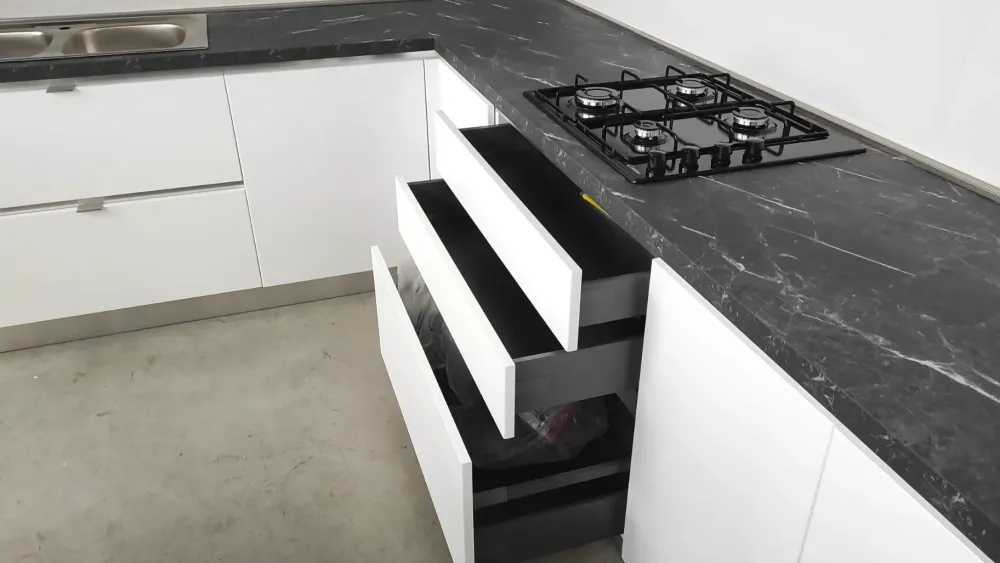 Le ante, i cassetti e cestoni sono rallentati grazie a cerniere della nota ditta austriaca Blum.