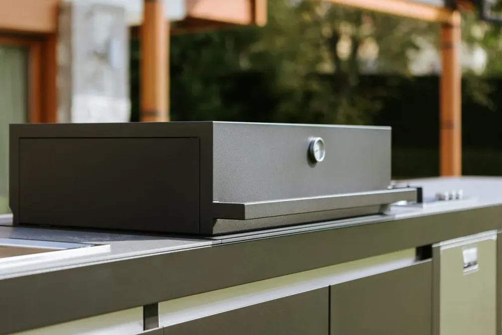 Le cucine outdoor della serie Agher si vestono di nuovi colori, ma il cuore dell’esperienza rimane immutato: creare nuovi spazi di convivialità. Ogni preparazione diventa un’opportunità per rallentare il ritmo e riscoprire il piacere della condivisione, esaltando ogni ingrediente. L’attenzione al dettaglio e la passione per la qualità si fondono, trasformando ogni pasto in un omaggio alla tradizione culinaria, arricchita da un tocco di modernità. Il nostro obiettivo è elevare il semplice atto di cucinare a un’esperienza di convivialità genuina, un trionfo dei sensi che celebra l’arte dello stare insieme. È un invito a godersi ogni momento con gusto apprezzando il design funzionale e la bellezza senza tempo di ogni cucina Agher. Nella nostra visione il colore non è un dettaglio, ma un’essenza che abbraccia e definisce lo spazio in cui si vive. La cucina Agher nasce con nuove palette di colori pensate per impreziosire ogni momento trascorso all’aperto. Ogni tonalità è stata accuratamente scelta non solo per la sua bellezza intrinseca, ma per la capacità di rispecchiare e amplificare il design e l’architettura di questi sofisticati spazi culinari. Il sistema brevettato Phobos® assicura eccezionale rigidità torsionale e isolamento termico. L’alta longevità della cucina è garantita grazie alla minimizzazione della dilatazione dei materiali e all’unione coesa, ma leggera, del piano in MDI alla struttura sottostante. La struttura è progettata con una perfetta composizione di materiali: acciaio inox, zinco magnesio e alluminio. Questa sinergia di elementi è stata meticolosamente calibrata per raggiungere un’eccezionale rigidità strutturale mantenendo al contempo un profilo di leggerezza. I piedini in acciaio inox con appoggio in gomma sono progettati per garantire la massima stabilità.