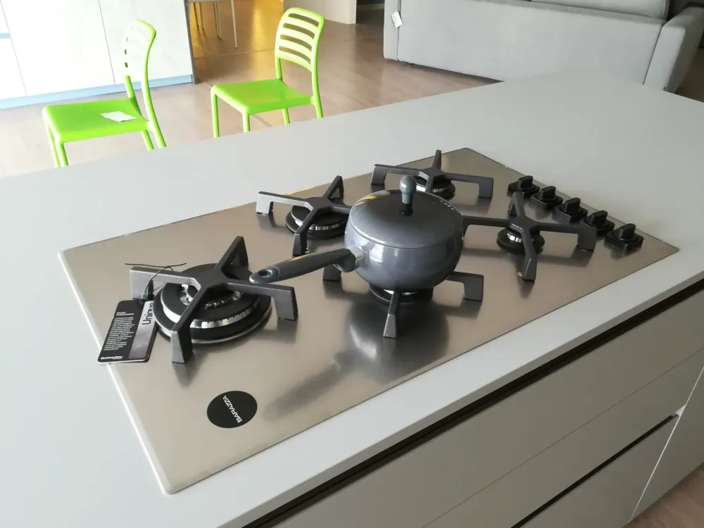 - Distribuzione uniforme del fuoco sotto il pentolame e cottura uniforme sono i connotati principali del piano cottura a gas che abbiamo scelto per questa cucina Dibiesse, adeguato per agevolare le consuete pratiche che svolgiamo in cucina.
