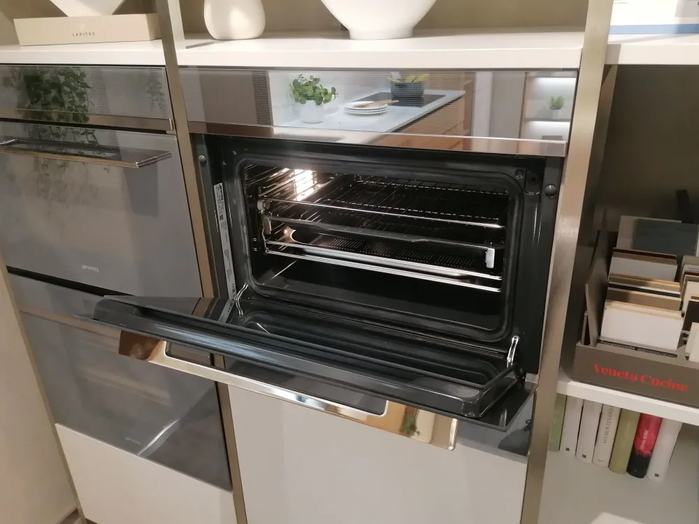 Veneta cucine ha scelto di realizzare in laminato opaco la cucina Tribeka ora in offerta, materiale durevole nel tempo ma anche gradevole e elegante.