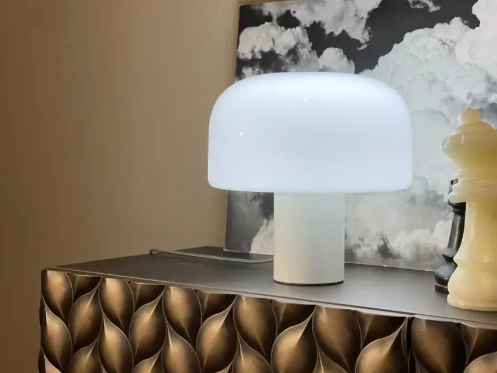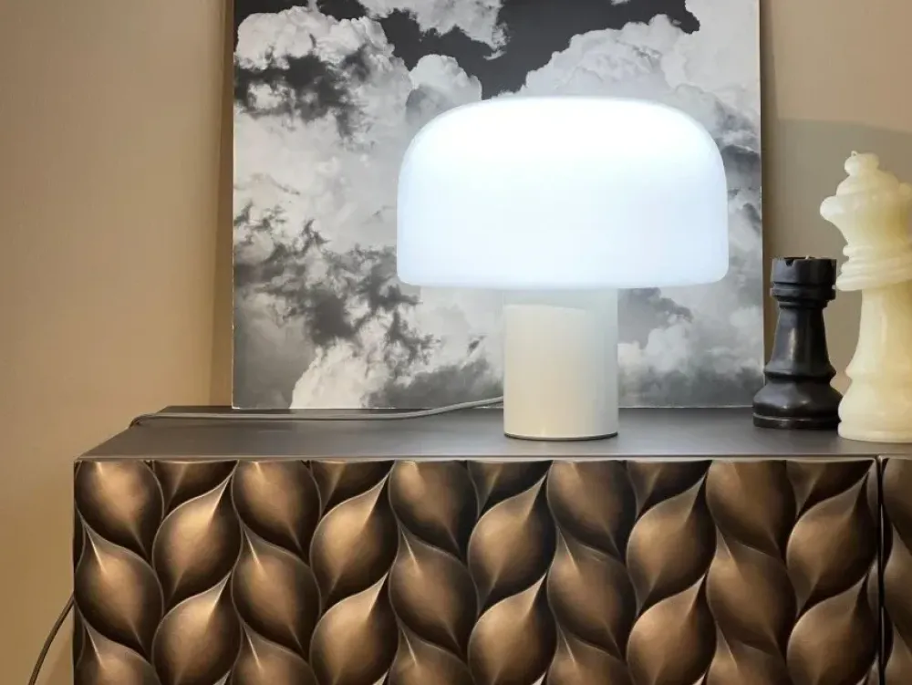 La lampada Bellhop Glass T di Flos è una raffinata lampada da tavolo che coniuga estetica, innovazione e attenzione alla sostenibilità.