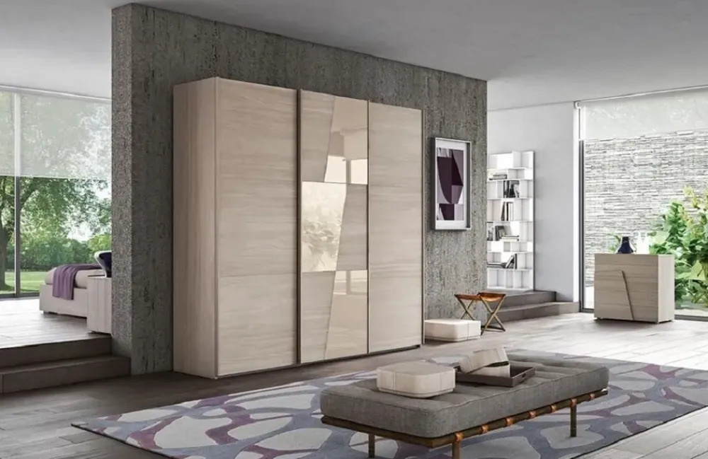 - Modello:Armadio a 3 ante scorrev. con inserti in vetro laccato in promo-sconto del 30%