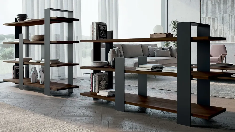 Arredodesign.eu proponiamo di Dall’Agnese la libreria Kyoto posizionabile sia a parete che in centrostanza come divisione.