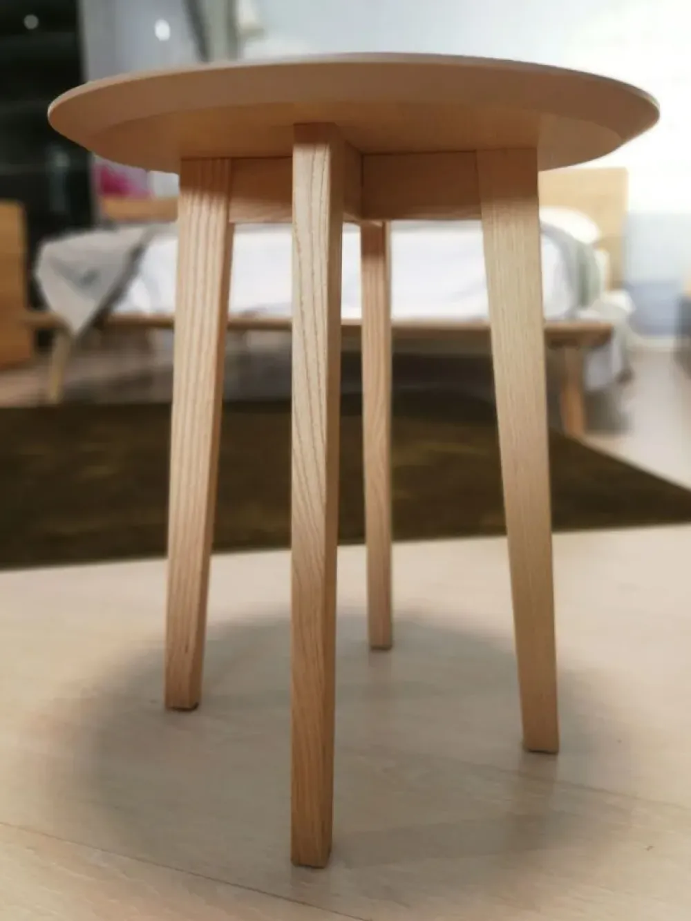 Il piano rotondo dallo spessore sagomato risulta esteticamente fine senza sacrificare equilibrio e funzionalità. Dimensioni: diametro cm 45 altezza cm 52
