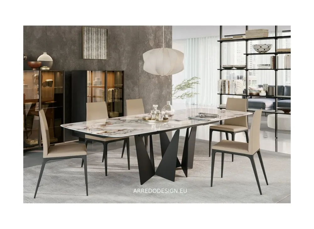 - Il prezzo esposto è per il tavolo EIFFEL di cm 180 X 110 allungabile a cm 280 con top in gres e allunghe in laccato nero opaco .