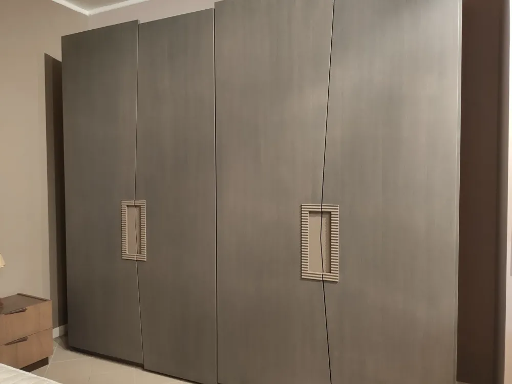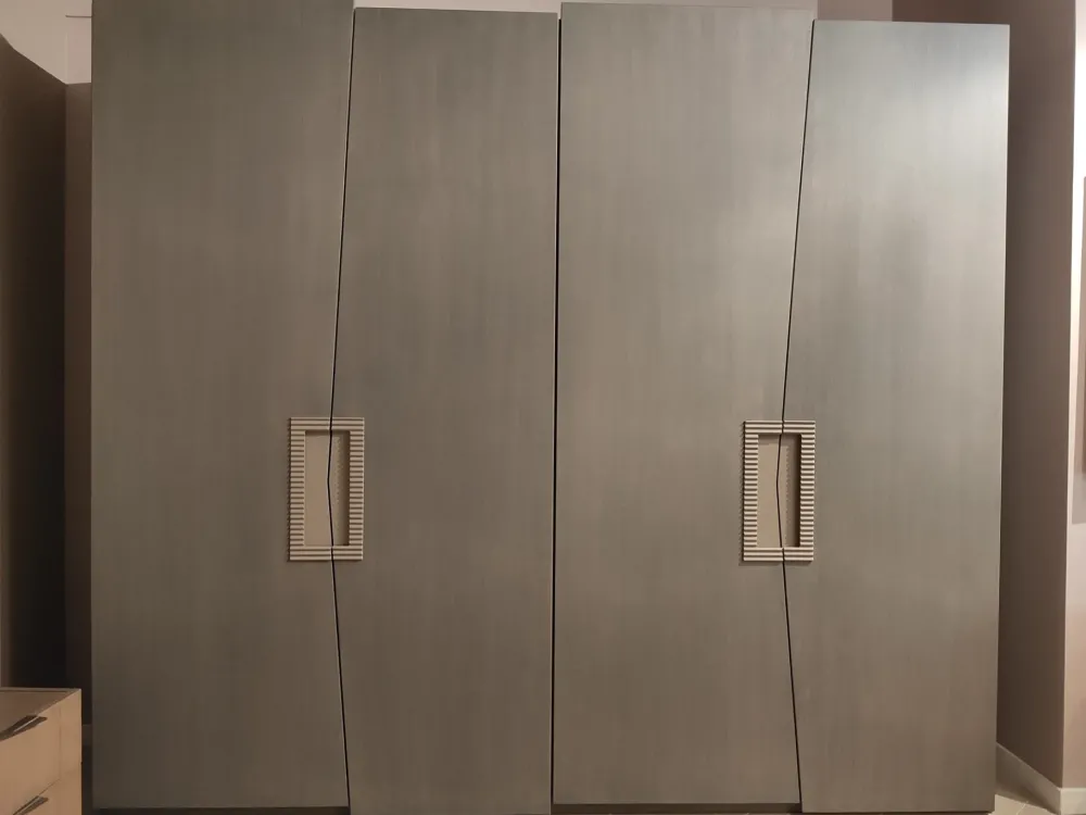 ARMADIO 4 ANTE BATTENTI OBLIQUA IN ROVERE GRIGIO MASSELLO NATURALE, maniglia Finitura Laccato Opaco Poro Aperto colore PIACENZA