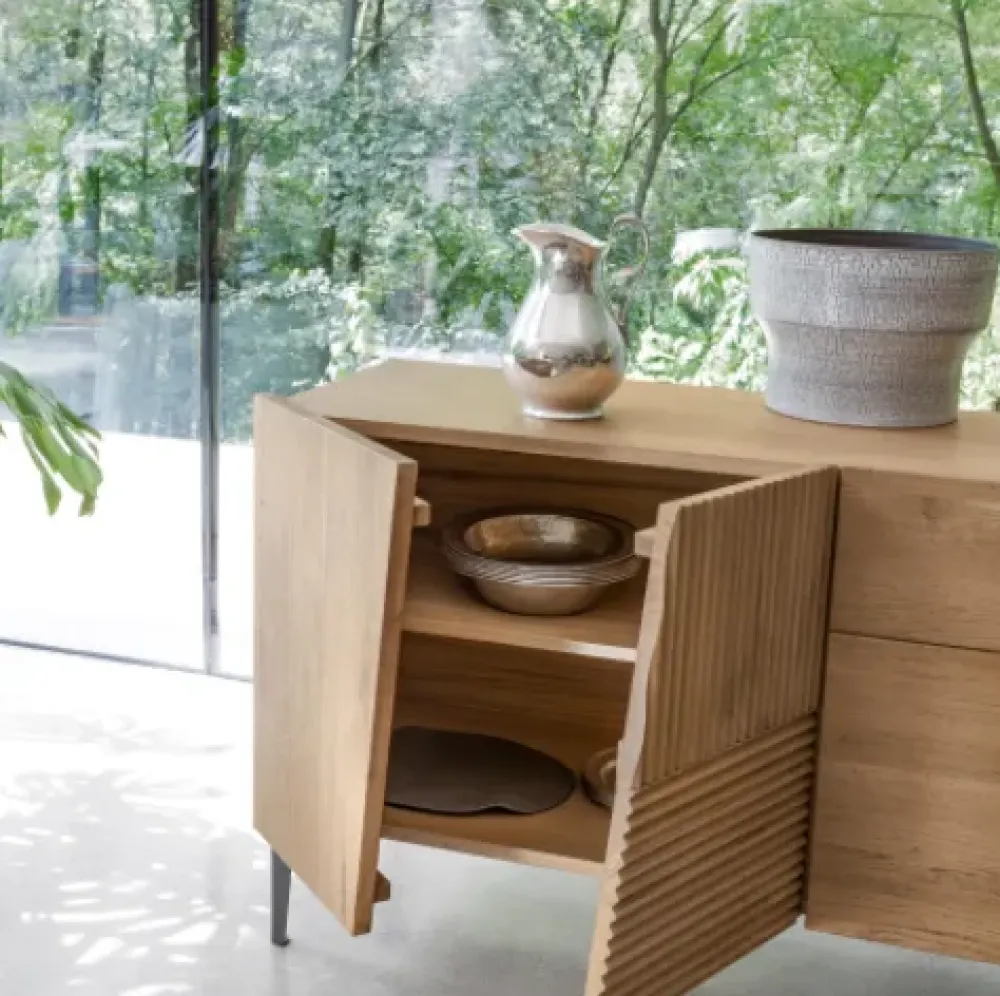 Forme decise e materiali durevoli: scopri la madia in legno qui disponibile e potrai valorizzare la zona giorno.