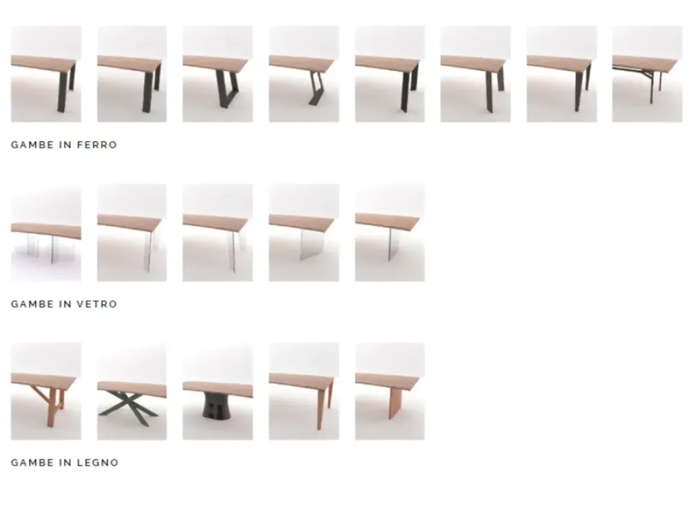 Si può spaziare tra le varianti in legno che garantiscono una continuità con il piano, il ferro in tutte le sue finiture, per creare un piacevole contrasto oppure il vetro per allegerire la struttura facendola quasi sparire con il fine di impreziosire ancora di più la nobiltà del piano in massello.
