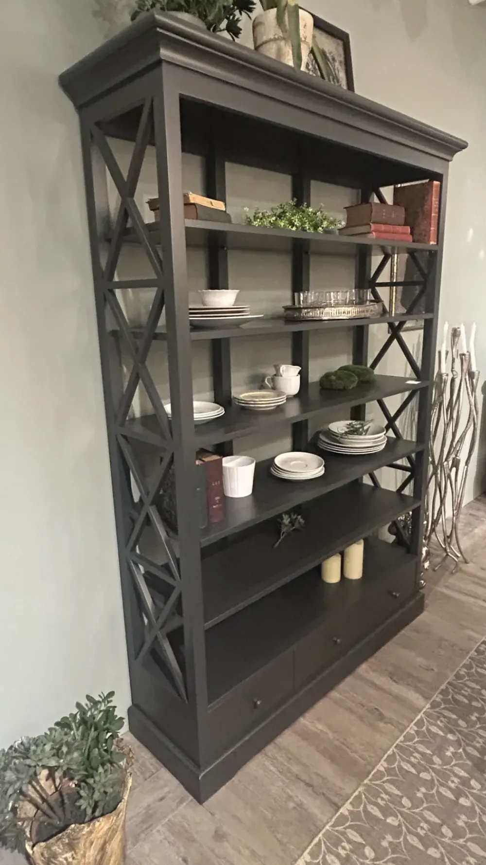 Libreria laccata antracite con 3 cassetti nella parte bassa .Posizionabile in vari ambienti , dal living , camera letto, ingresso, bagno, cucina . Dimensioni L.140 h.200 prf.40 . 1 solo pezzo disponibile