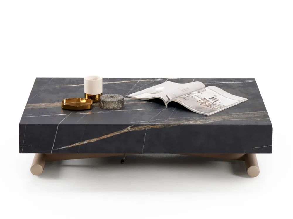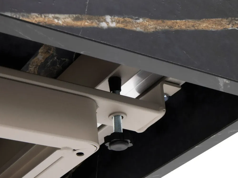 Alexander outlet è un tavolino trasformabile con prolunghe interne, pensato per unire funzionalità ed eleganza. Il suo piano rettangolare allungabile si trasforma con facilità in un vero e proprio tavolo da pranzo, perfetto per accogliere ospiti o rispondere a esigenze improvvise di spazio. Grazie al pratico meccanismo di sollevamento a gas, l’altezza può essere regolata con precisione millimetrica, offrendo la massima versatilità d’uso. Sotto il piano, un sistema in alluminio nasconde con discrezione due prolunghe interne, pronte all’uso quando servono.