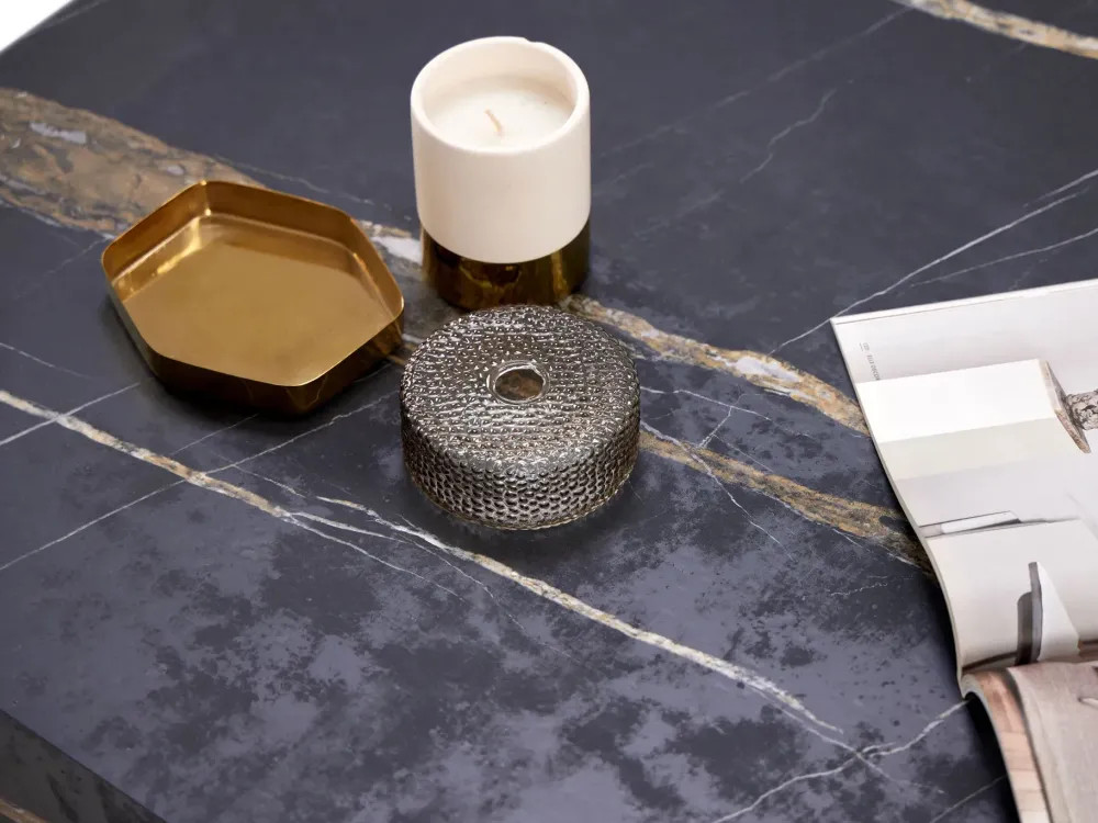 Il piano in nobilitato effetto marmo, abbinato alla struttura in metallo verniciato color sabbia, rende Alexander outlet un complemento capace di integrarsi armoniosamente sia in ambienti moderni che in contesti più classici.