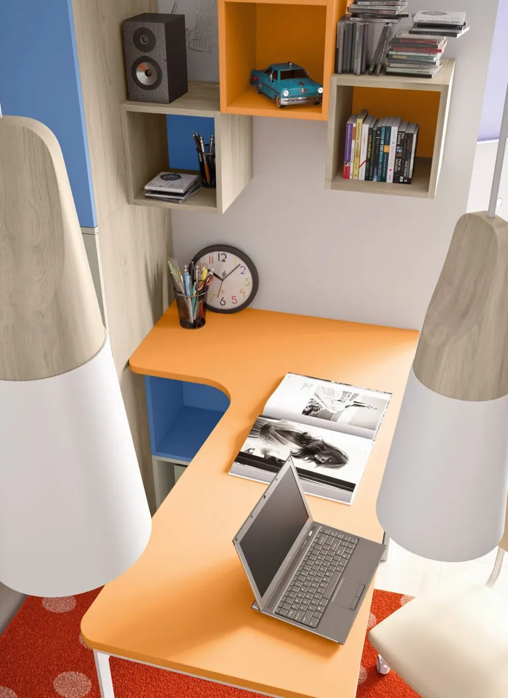 Cameretta nuova di Mottes mobili a ponte con un letto, comodino a tre cassetti con rotelle, armadiatura capiente con 8 ante e alla base due cassetti estraibili. Libreria a giorno a tutta altezza, scrivania ad angolo con la base in acciaio, cubetti contenitori porta oggetti//libri. Come in foto i colori predominanti sono il cobalto, l’arancione il sabbia e l’olmo, ma, senza variazione di prezzo si possono scegliere a proprio piacimento, alleghiamo foto con tutti i colori disponibili. Le misure sono: lunghezza frontale 234,8 cm parete laterale 251,8 cm altezza totale armadio 258 cm Il prezzo è di 2800 euro, iva e consegna compresi. I tempi di consegna sono di circa 20//30 giorni lavorativi, consegna anche in Europa servizio a richiesta Per qualsiasi informazione, preventivo o montaggio potete contattarci.