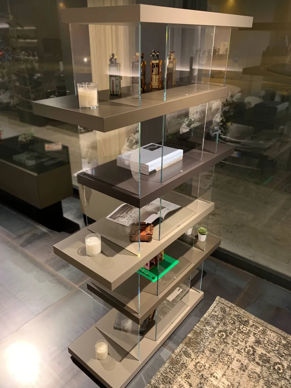 LIBRERIA A TERRA MODELLO AIR DI LAGO IN OFFERTA OUTLET AZIENDA: Lago MODELLO: Air – versione 1462 FINITURA: Laccato opaco e vetro temperato trasparente. Composizione dal basso: 1 Mensola Laccato opaco Havana cm 92×40,6 spessore 5 cm 1 Mensola Laccato opaco Moka cm 92×40,6 spessore 5 cm 1 Mensola Laccato opaco Havana cm 92×40,6 spessore 5 cm 1 Mensola Laccato opaco Castagno cm 92×40,6 spessore 5 cm 1 Mensola Laccato opaco Moka cm 92×40,6 spessore 5 cm 1 Mensola Laccato opaco Havana cm 92×40,6 spessore 5 cm 2 Set Alzata da cm 27,6 vetro trasparente 3 Set Alzata da cm 32,2 vetro trasparente DIMENSIONI TOTALI: L 110,4 H 183,5 P 40,6