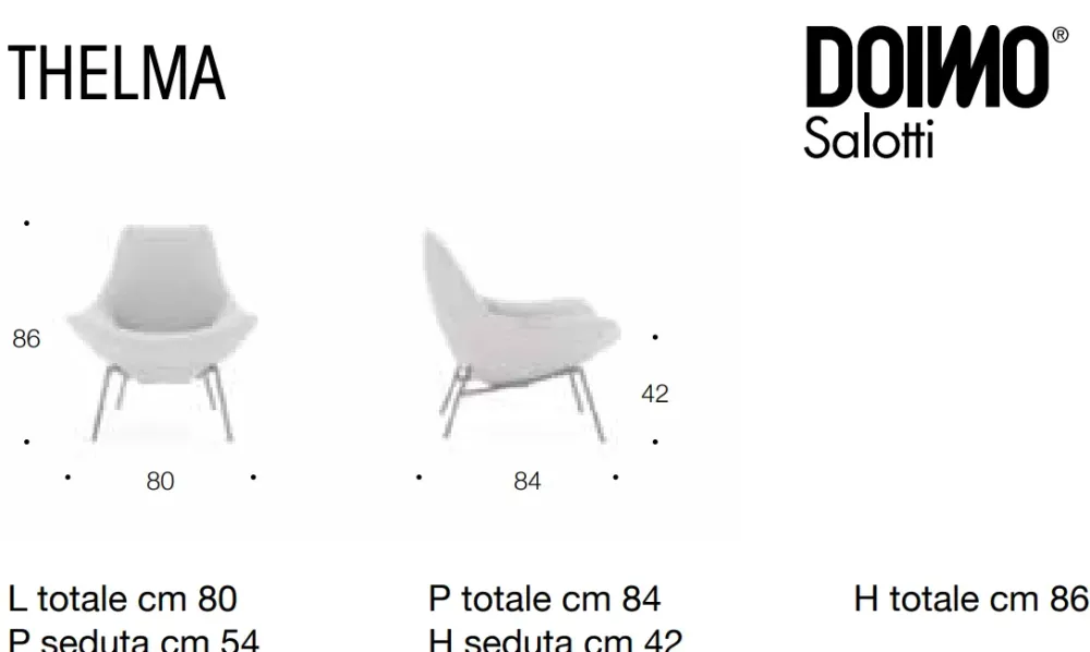 Il modello qui presente appartiene alla nostra linea di poltrone con seduta fissa: contattaci e ottieni informazioni su Thelma ora disponibile con forte sconto.