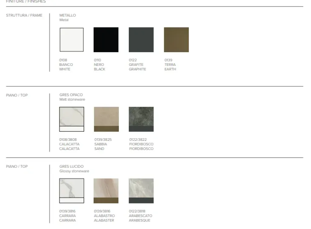 Basamento in metallo verniciato e piano girevole semiautomatico in gres porcellanato.