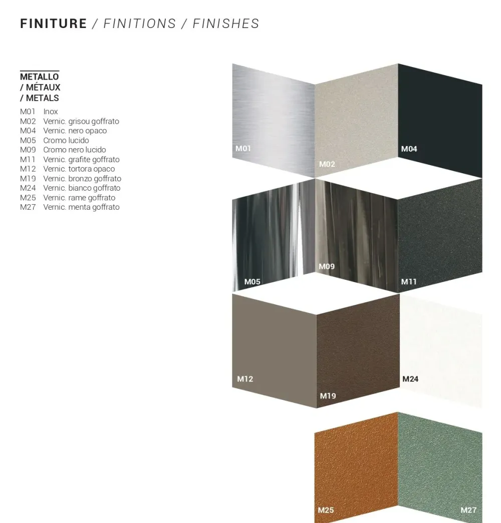 Tavolo da pranzo fisso, struttura in metallo, piano in ceramica o in nobilitato.