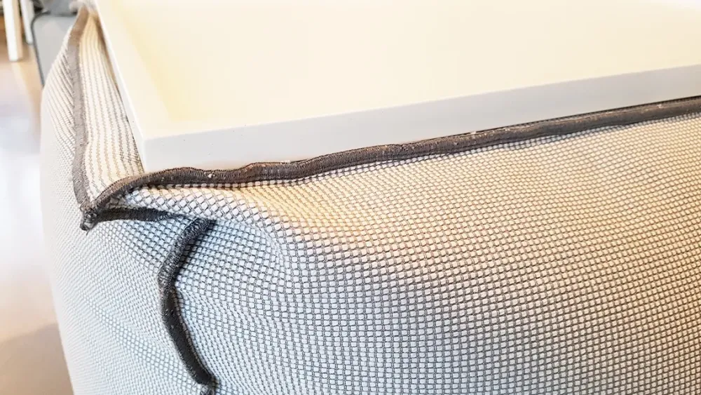 Il vassoio in offerta è abbinabile al pouf imbottito di Gervasoni.