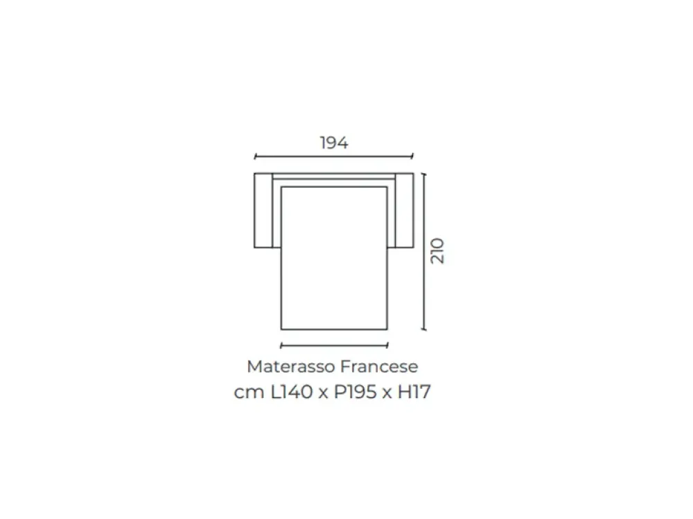 Piano Letto: MESH (Con rete a maglie elettrosaldate) e materasso L 140 cm x P 200 cm x H 18 cm o H 20 cm o CLASSIC (Con doghe di legno) e materasso H 16 cm.