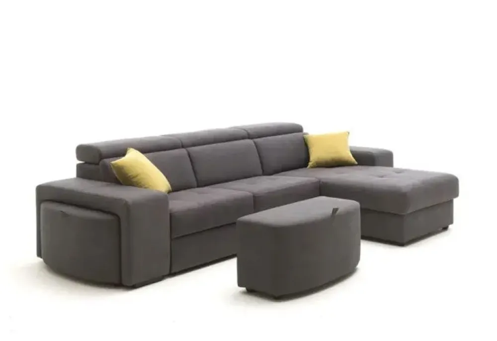 - Allo scopo di organizzare al meglio lo spazio nel soggiorno, bisogna scegliere gli arredi a seconda di forma e dimensione degli ambienti, selezionando perciò anche il tipo di imbottito che è per te tra divani, poltrone, divani letto e tanto altro; il modello visibile in foto fa parte della collezione di divani letto con penisola di grande qualità firmati dal brand.