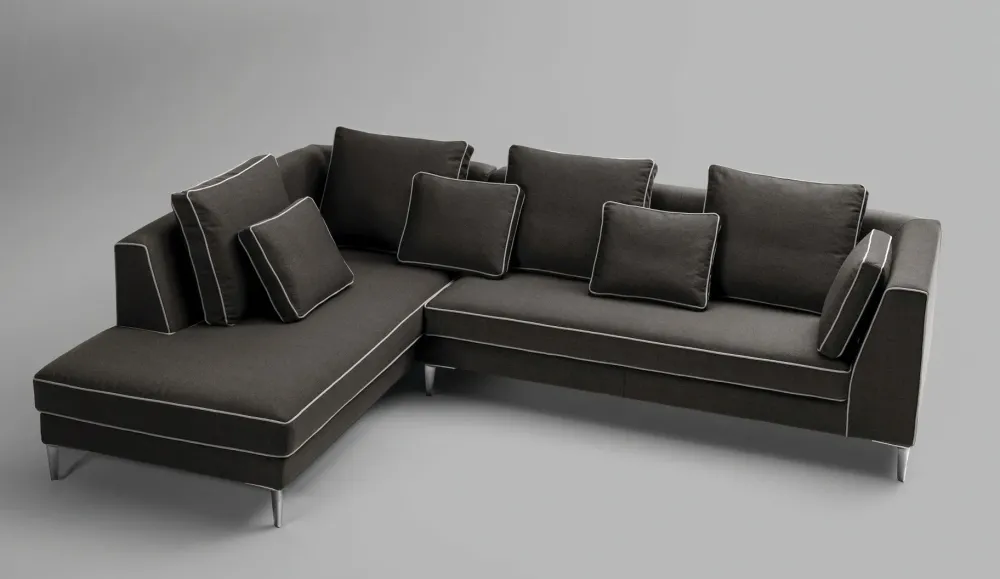 - I mobili, tra cui altresì gli imbottiti, non devono mai risultare d’ingombro, prima di tutto per lo spazio che impegnano all’interno dei locali; infatti è tanto importante valutare con attenzione anche le loro dimensioni: il modello di Divano angolare mostrato in foto è appartenente alla collezione di imbotti della firma di lunghezza che varia da 251 a 275 cm ed è perciò ideale per un luogo di svariate volumetrie.
