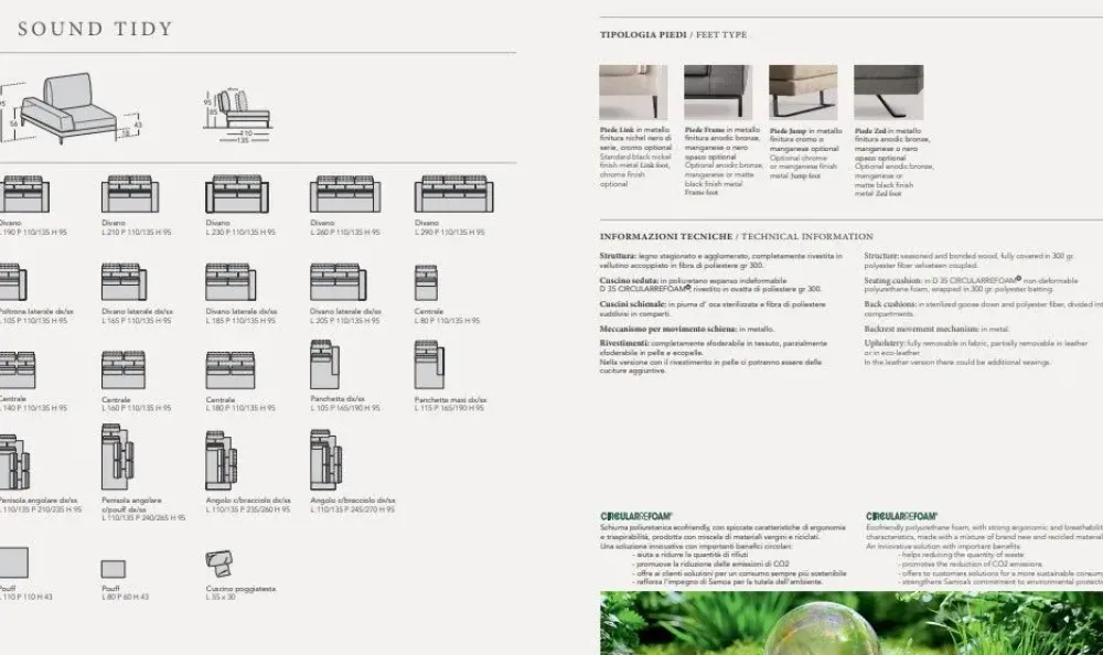 Divano mod. Sound Tidy , proposto con penisola staccabile da cm. 235×190 . Prezzo con tessuto in cat. A , tutti gli schienali sono dotati di un comodo meccanismo che consentono di aumentare la seduta per un confort senza limite . Piedini considerati nel costo modello Zed come da foto , cuscini arredo optional .