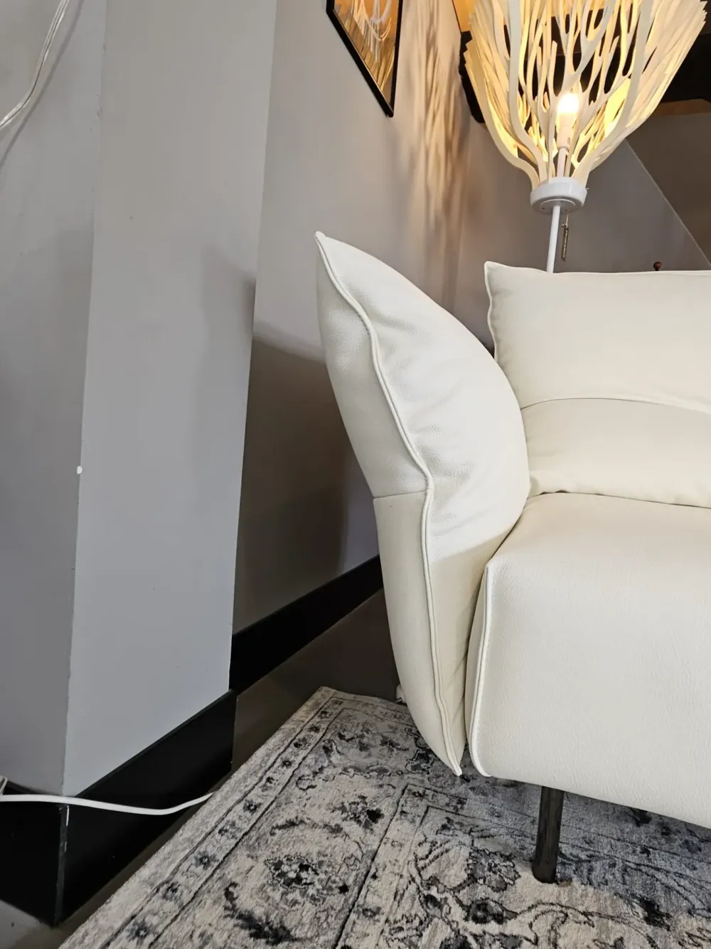 Divano in pelle bianca cm. 218/252*95*h.95.