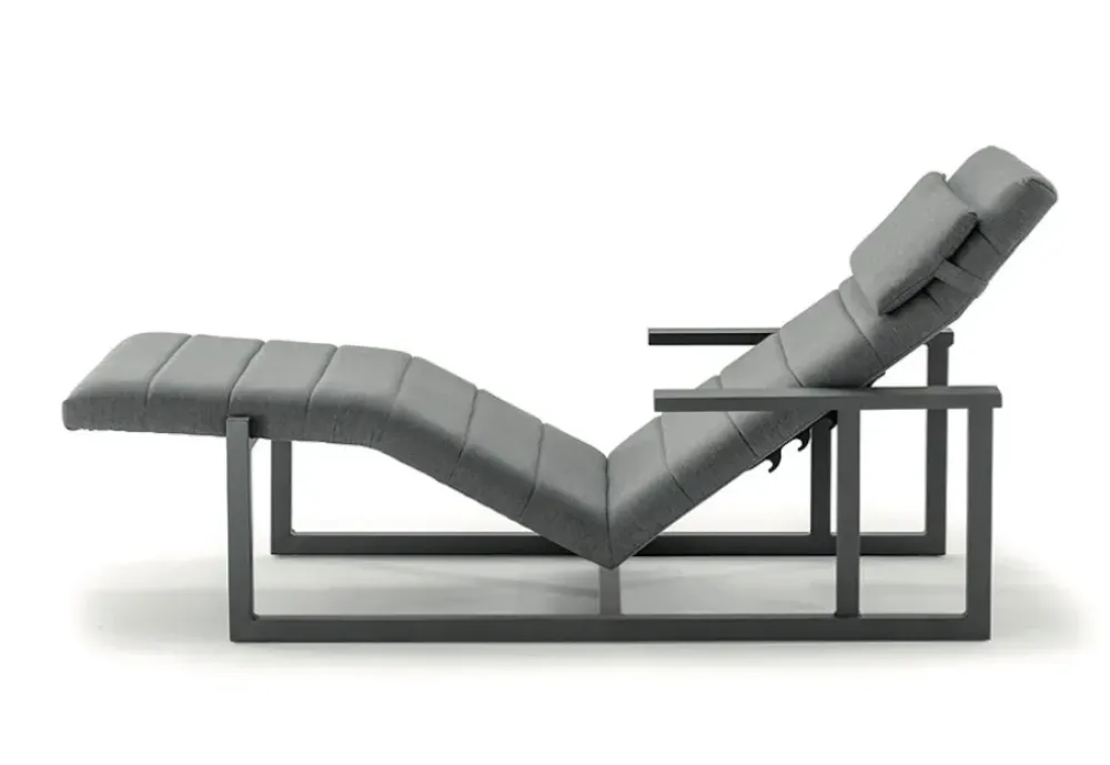 Aluminium sunbed upholstered with fast dry foam and Sunbrella® fabric.