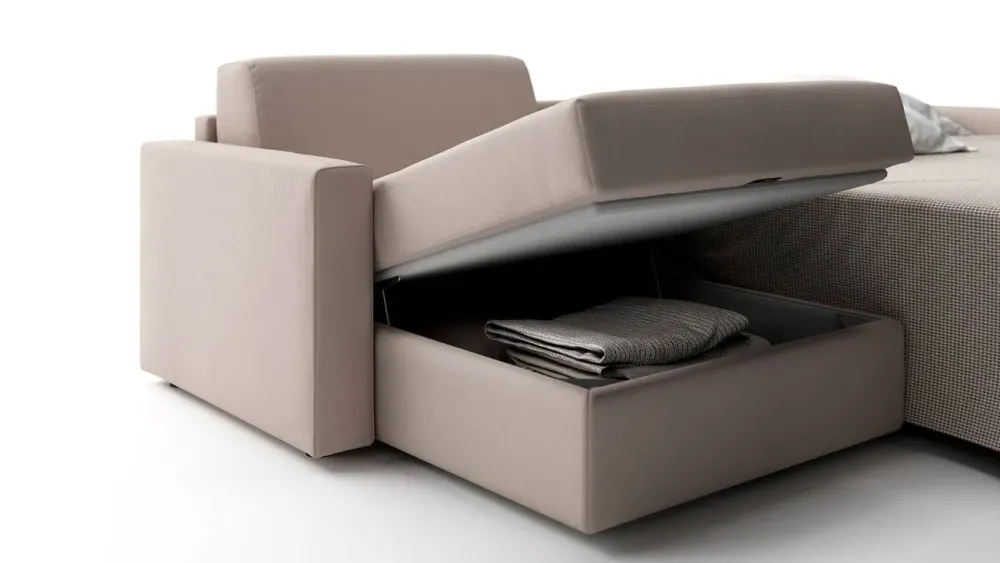 Con penisola o chaise longue con vano contenitore