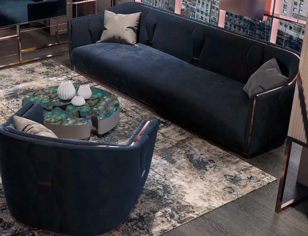 - Se desideri arredare il tuo soggiorno secondo uno stile moderno, opta per imbottiti in tonalità briose, al contrario se vuoi creare un’ambientazione di gusto classico con uno spiccato senso di accoglienza, potrai valutare rivestimenti nelle sfumature calde o neutre: l’imbottito Divano luxury velluto acciaio è rivestito in tessuto, materiale perfetto per garantirti morbidezza nel tempo, nonchè di ultimare il soggiorno anche dal punto di vista estetico.