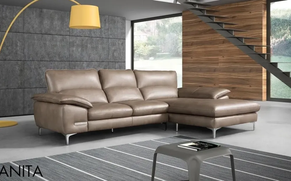 Ecco qui Divano mod.anita rivestito in pelle spessorata con chaise-longue scontato del 50%: stile e qualità a prezzo Outlet
