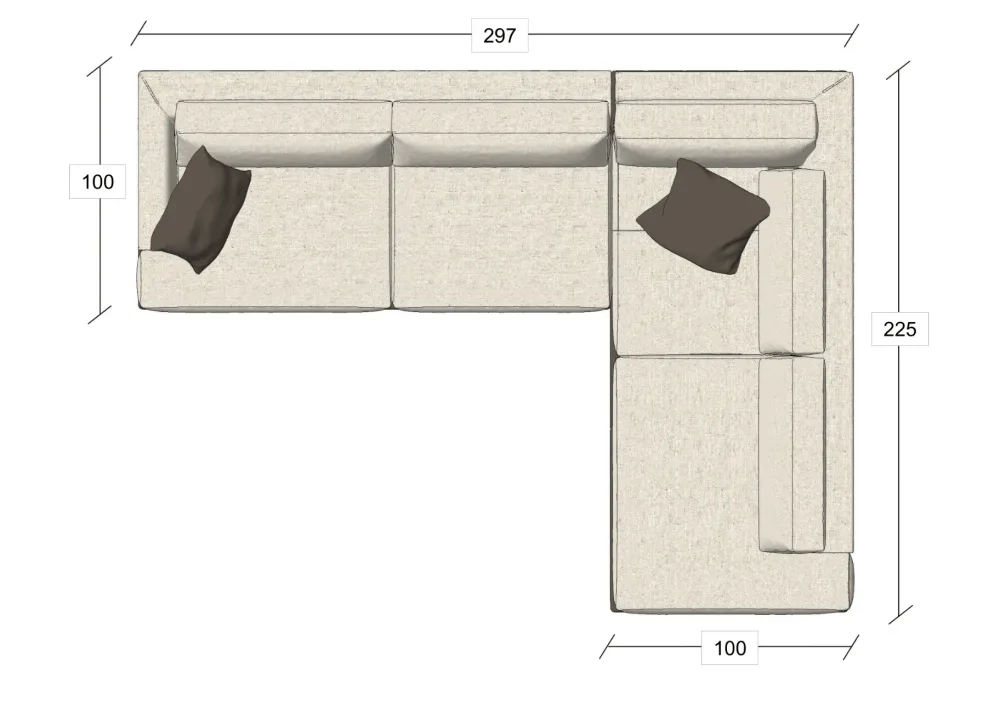 - composizione angolare dimensioni 297 x 225cm, altezza totale 85cm