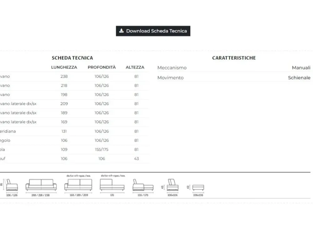 Per versioni su misura o altre dimensioni con tessuti o pelli a scelta RICHIEDERE PREVENTIVO.