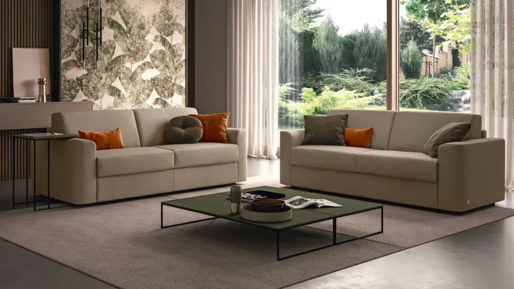Un soggiorno, che sia di gusto classico o moderno, ha bisogno di molteplici complementi accessori al fine di essere ultimata nella maniera ideale: tra questi non mancherà un divano letto come il modello Tito qui presente, essenziale per quanto riguarda l’ ottimizzazione e l’estetica dello spazio.