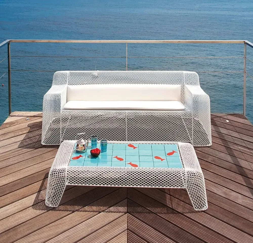 - 1. Il Divano modello Ivy di Emu è realizzato con materiali di qualità superiore, resistenti alle intemperie, che lo rendono adatto per essere usato in giardino.