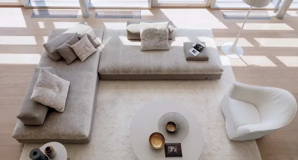 Massima libertà compositiva, grazie a schienali e braccioli posizionabili liberamente ovunque per un nuovo sistema di sedute originale e distintivo. Forte personalità e flessibilità di interpretazione dello stile di seduta per il divano Monopoli, che si aggiunge per filosofia e componibilità all’esclusivo sistema Glow-in.