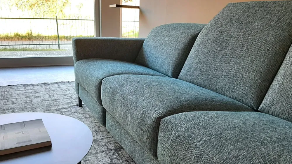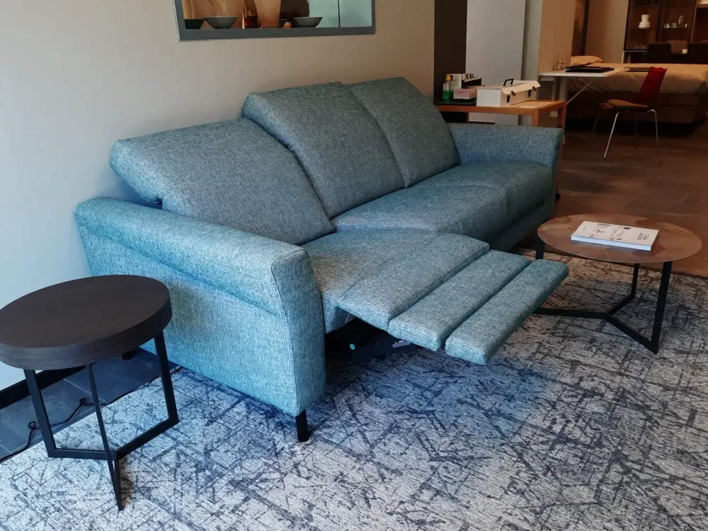 Il divano ha una seduta relax la prima a sinistra e gli schienali reclinabili