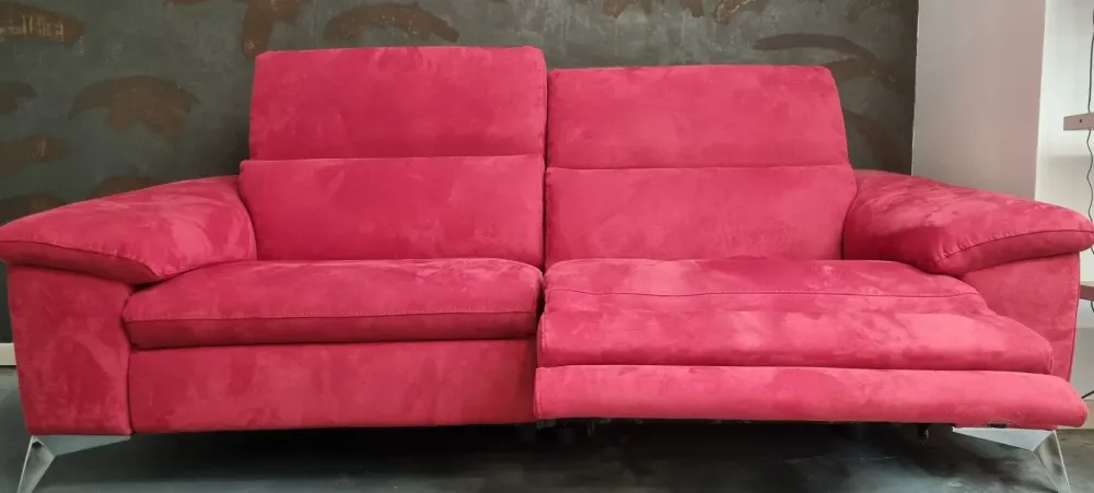 Martine versione relax dotato di meccanismo elettrico con comando posizionato sul lato esterno del divano.